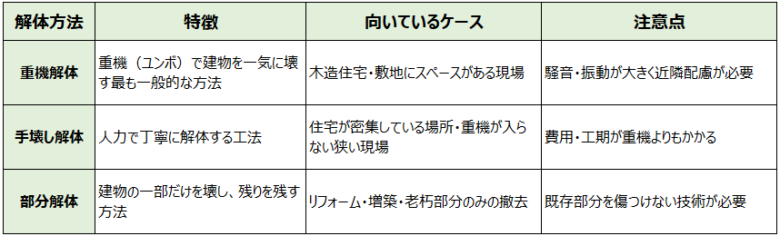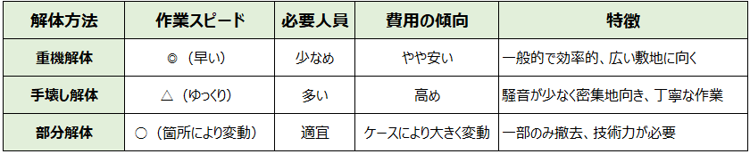【主な解体方法と特徴】